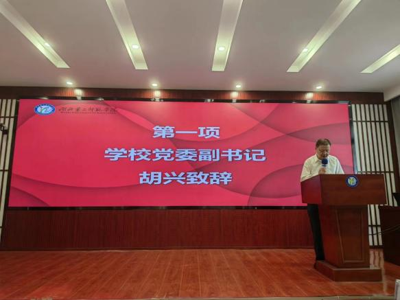 本网讯(学通社记者 李云昕)9月26日上午,湖北第二师范学院与美国东北州立大学学前教育中外合作办学项目2023级新生开班仪式在1号教学楼1301多功能厅顺利举行。校党委副书记胡兴,美国东北州立大学国际部主任李暄,美国东北州立大学研究生院院长Dr. Cari Keller出席活动,教育科学学院分党委书记乐三明主持会议。