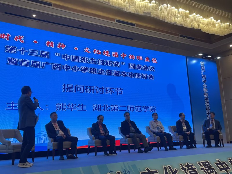 (通讯员:尹霞)10月12—14日,第十三届“中国班主任研究”圆桌会议暨首届广西中小学班主任基本功研讨会在桂林召开。会议主题为“时代•精神•文化境遇中的班主任” ,与会代表们通过主旨报告、分论坛报告、分会场展示等形式,就班主任的文化境遇与角色构建、人工智能时代班主任工作挑战与前瞻、班主任专业发展机制及培训等方面进行深入交流与探讨。