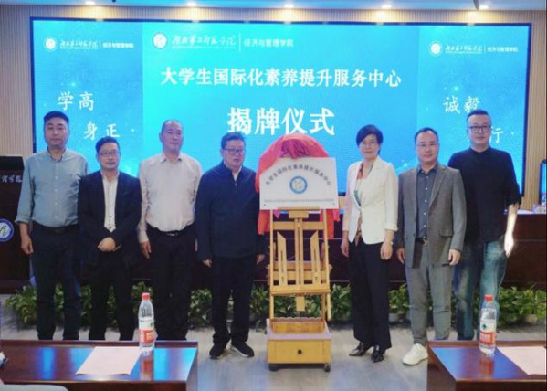 本网讯(通讯员 徐昌海 罗心怡)10月20日下午,湖北第二师范学院大学生国际化素养提升服务中心在经济与管理学院(以下简称经管学院)三楼多功能报告厅正式揭牌成立。武汉风向标教育培训中心总经理郑涛、美国东北州立大学(NSU)校方代表朱波、英国伯明翰大学学院(UCB)校方代表管宋君受邀参加活动。仪式由经管学院党委副书记李京主持。