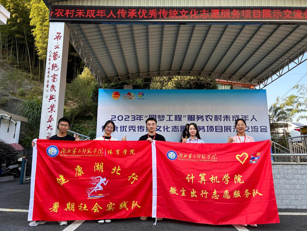 本网讯(通讯员 池家飞 张锐)为进一步加强项目总结,提升项目成效,促进展示交流,10月21日至23日,由中央文明办三局、团中央青年志愿者行动指导中心及中国青年志愿者协会秘书处共同举办的“圆梦工程”服务农村未成年人传承优秀传统文化志愿服务项目展示交流会在湖南益阳举办。我校体育学院和计算机学院两支代表队参加此次展示交流活动。
