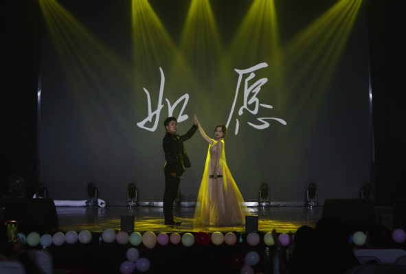 云雾缭绕中,古唯舞蹈社舞步轻盈,翩翩起舞,大学生艺术团舞蹈组带来的《采薇》、新闻与传播学院带来的《文传国风共赏》让大家感受到了中华传统文化的魅力与精彩;“在触摸里奔跑,在黑夜里舞蹈……”,逆梦音乐社深情唱出对青春的赞歌,一曲《违背的青春》音律独特,引得观众掌声连连;伴着动感乐曲,专业与舞蹈结合的啦啦操表演活力无限,腿法炫酷的跆拳道表演征服全场;校团委学生社团联合会指导老师鲍雪与校艺术团成员带来的歌曲《如愿》、校团委副书记张静同笛箫协会成员带来的竹笛合奏《明月天涯》将晚会带入了高潮。