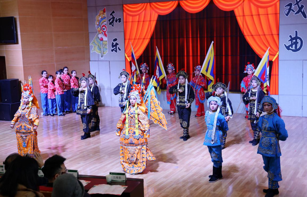 在戏曲展示环节,来自湖北二师、光谷一初、光谷三小、光谷五小的同学们为大家带来了《水袖》《唱脸谱》《天女散花》《戏韵流芳》等节目,获得观众阵阵掌声。