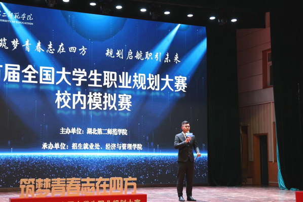 本网讯(通讯员 徐雨佳)12月18日下午,我校首届全国大学生职业规划大赛校内模拟赛在大礼堂开赛,湖北省就业指导中心主任助理陈彬、广东省职业经理人协会名誉会长柯海员出席活动。
