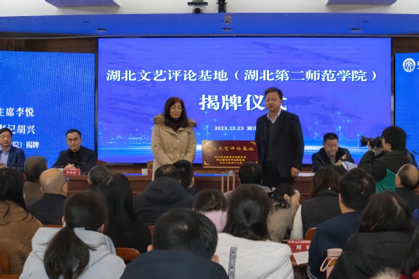 本网讯(通讯员 王雯雅 邬彦竹 郑诗谣)12月23日上午,湖北文艺评论基地(湖北第二师范学院)揭牌仪式暨新时代文艺评论建设与网络文学高质量发展研讨会在我校隆重举行。湖北省文联党组成员、副主席李悦,湖北省作协党组成员、副主席蔡家园,我校党委副书记胡兴,党委常委、副校长田恒平出席,省内外部分高校和相关领域的专家学者参加。