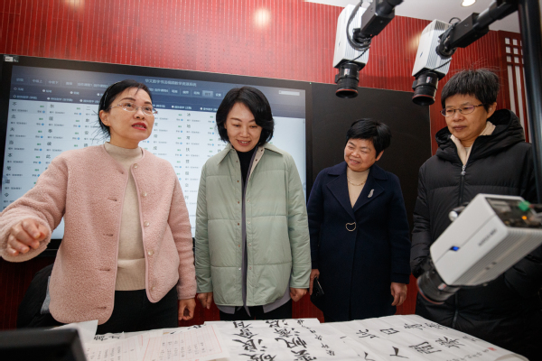陈平一行还实地参观了国家语言文字推广中心、教师教育研究与实践中心、教育数字化发展中心,深入课堂与哈萨克斯坦国际学生、AI测评室的师生们亲切交流,了解学校教师教育共同体建设,与相关负责人探讨跨境电商人才培养、AI教育产业发展等方面的情况。