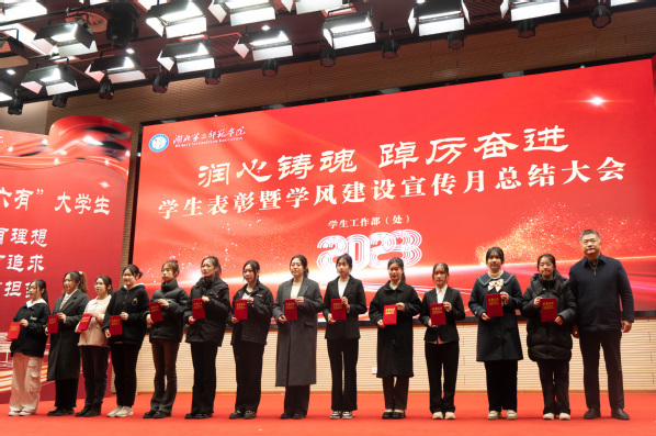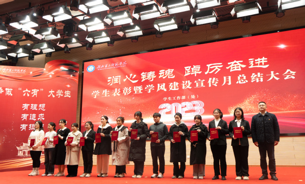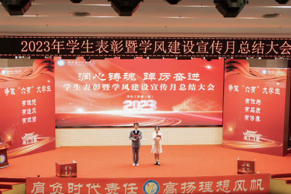会上表彰了2022-2023学年度国家奖学金、国家励志奖学金、校级奖学金、优秀学生干部、综合素质优秀大学生、先进班级、文明寝室标兵,以及2023年“书香达人”,第十届大学生思想政治教育优秀论文、优秀工作案例等奖项并为获奖代表颁奖。