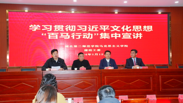 本网讯(通讯员 叶梦娇)为深入学习贯彻习近平文化思想,全面贯彻落实全国宣传思想文化工作会议精神。1月12日,学习贯彻习近平文化思想“百马行动”湖北第二师范学院马克思主义学院宣讲团赴赤壁市蒲纺片区开展“百马行动”“五个一”系列活动,采用宣讲报告会、实践调研、文艺演出等形式,把习近平文化思想送到基层一线,助推乡村振兴。