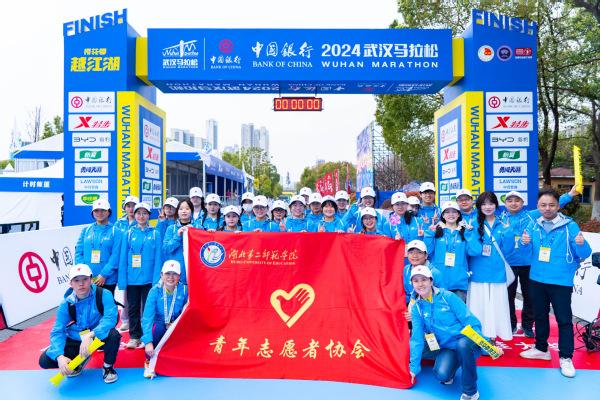 本网讯(通讯员 鲍雪)3月24日,2024武汉马拉松(以下简称“汉马”)在沿江大道鸣枪起跑。由校团委组织的13个学院共计536名志愿者为12000余名全马参赛选手提供全程终点比赛服务,见证选手们冲向终点的辉煌时刻。