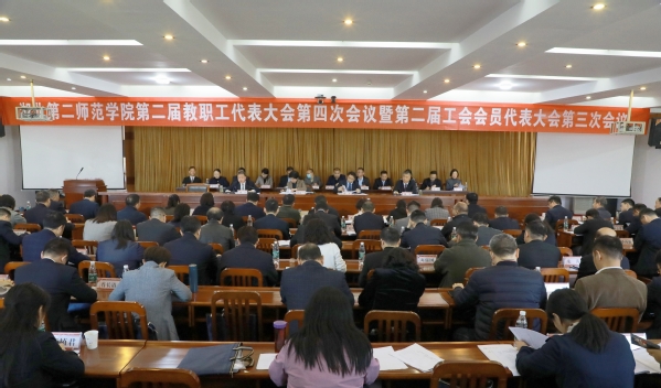 本网讯(学通社见习记者 邹子优 殷静萍)3月29日,学校隆重召开第二届教职工代表大会第四次会议暨第二届工会会员代表大会第三次会议。全体正式代表、列席代表出席会议,大会由党委副书记胡兴主持。