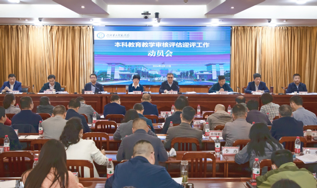 本网讯(通讯员 王锐)4月17日上午,学校在行政楼五号会议室召开本科教育教学审核评估迎评工作动员会。湖北省教育评估院李友玉研究员一行到校指导,校党委书记杨鲜兰、纪委书记刘昕、副校长田恒平、党委常委周忠及全体中层干部参加会议,校长郑军主持会议。