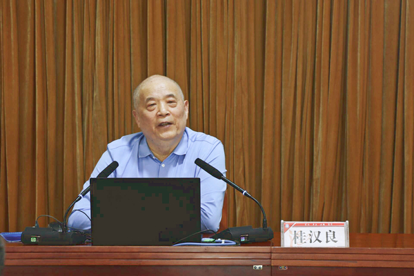 随后,在领导干部读书班上,桂汉良教授以“强化自我约束把党纪刻印在每个党员心上——党纪学习教育和《中国共产党纪律处分条例》解读 ”为题,从党纪学习教育的重要意义、全面从严治党的历史脉络、现行党内法规的基本框架、《条例》主要内容和重点辨析以及严明党的纪律全面从严治党等五个方面展开,深入浅出地对《条例》进行了全面阐释和解读,进一步让党员干部受到了教育,明确了纪律底线、红线。桂汉良教授以渊博的文化学识、扎实的授课功底和风趣的言语表达赢得了与会同志们的阵阵掌声。