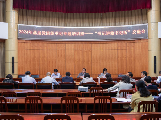本网讯(通讯员 伍明 粟喜梅)5月7日上午,学校在行政楼一号会议室举办2024年基层党组织书记专题培训班——“书记讲给书记听”交流会。校党委副书记胡兴出席会议并讲话。组织部常务副部长陈慧敏主持会议。