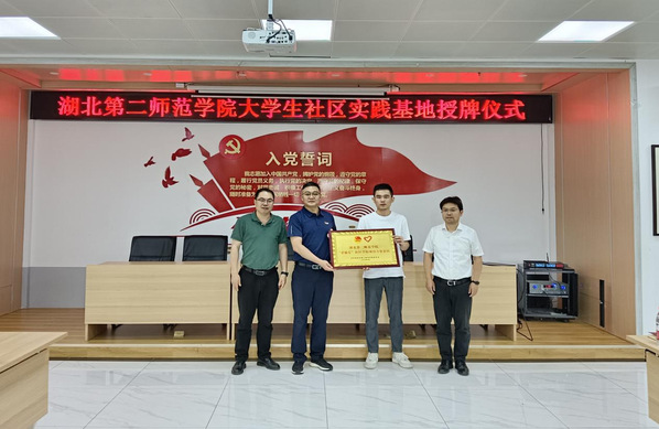本网讯(通讯员 池家飞)6月6日下午,我校“桑榆乐”社区学校项目启动仪式在武汉市东湖高新区九峰街道仁尚里社区举行。校党委常委、副校长陈勇出席仪式并为项目共建社区授牌。武汉东湖高新区九峰街道办事处党工委副书记、副主任兰添,校团委、物理与机电工程学院主要负责人参加仪式。