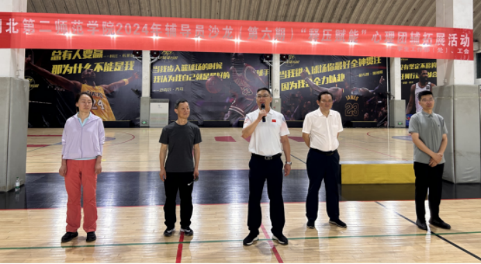 本网讯(通讯员 辛雯)6月13日上午,由学生工作部、校工会主办,体育学院承办的“释压赋能”—2024年辅导员心理团辅拓展活动在校外众创空间内篮球馆举行。党委常委、副校长陈勇出席活动。