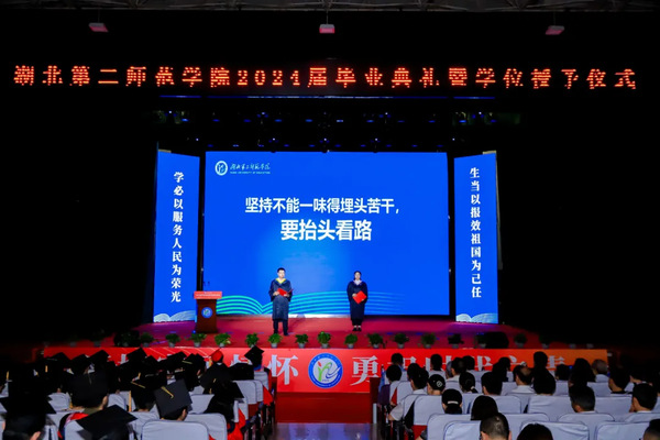 仪式在庄严的国歌中拉开帷幕。副校长陈勇介绍各教学学院毕业生情况。党委副书记胡兴宣读《关于表彰2024届优秀毕业生的决定》。校党委书记杨鲜兰为“优秀毕业生”代表颁奖。纪委书记刘昕为“西部计划志愿者”赠送纪念品。