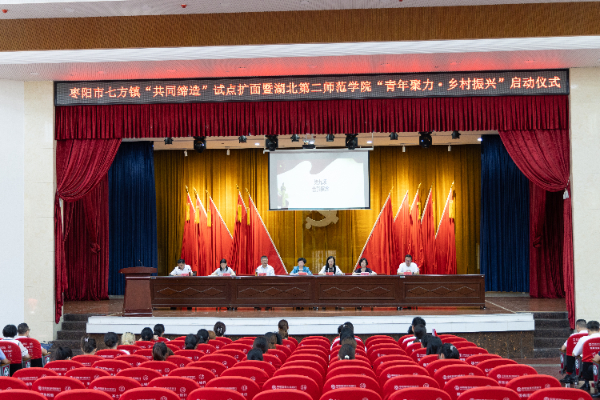 本网讯(通讯员 姚勇 傅文城)7月7日上午,湖北第二师范学院“青年聚力·乡村振兴”暨枣阳市七方镇“共同缔造”试点扩面启动仪式在枣阳市七方镇政府大礼堂举行。枣阳市市委副书记、市长孔令波,枣阳市市委常委、组织部部长康丹,我校党委书记杨鲜兰、党委常委周忠出席仪式。