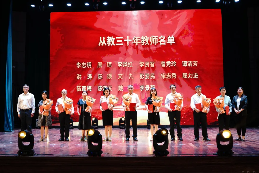 大会对从教30年的教职工进行了表彰,为离退休教职工举行荣休仪式。掌声一次又一次响起,现场的每一位教师都一同见证、感受这光荣时刻。