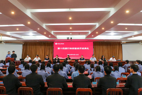 本网讯(通讯员 聂雨轩)9月12日上午,我校在行政楼五号会议室举行第十四届行知实验班开班典礼。副校长张红梅出席并讲话,典礼由行知实验班学员付丽丹、陈申昊主持。