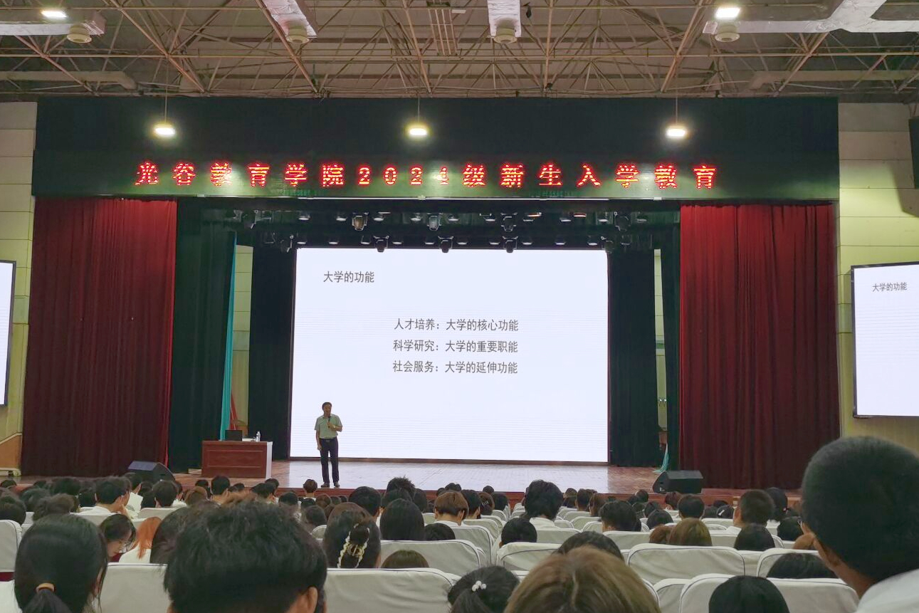 本网讯 (通讯员 龚晓琴)9月11日下午,光谷教育学院在大礼堂举行2024级新生入学教育。党委常委、副校长田恒平为2024级全体新生上以“知校爱校”为主题的入学教育第一课。光谷教育学院直属党支部书记、院长王翠主持。