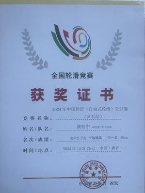 本网讯(通讯员 罗先斌)10月26日,我校轮滑队在指导老师罗先斌的带领下赴黄石市参加2024年中国轮滑公开赛(黄石站)的比赛。2023级休闲体育专业1班陕铠宁同学获成年男子组自由式轮滑跳高冠军,这是我校轮滑队首次在全国比赛中斩获冠军,很好的展示了我校大学生的青春活力和积极向上的精神风貌。