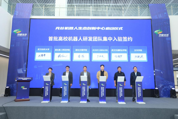 本网讯(通讯员 杨凯)10月28日,光谷机器人生态创新中心在光谷数字经济产业园启用。来自华中科技大学、武汉科技大学等首批12所高校机器人研发团队,以及极越汽车、格蓝若等20余家企业入驻,携手打造以“用”为导向的机器人产业发展综合服务平台,促进技术成果涌现和孵化。我校物理与机电工程学院机器人创新团队受邀参会并首批签约入驻。