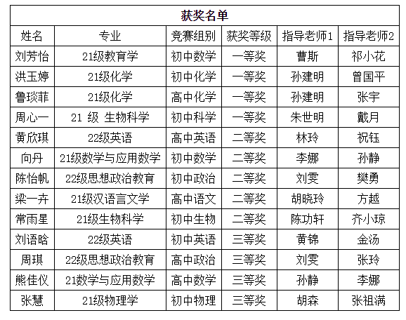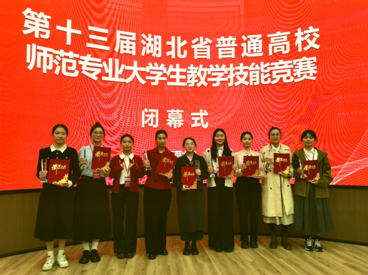 本网讯(通讯员 李娜)11月8-9日,由湖北省教育厅主办、华中师范大学承办的第十三届湖北省普通高校师范专业大学生教学技能竞赛落下帷幕。我校参赛选手表现突出,荣获一等奖4项、二等奖5项、三等奖4项的优异成绩。