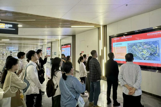 在武汉东站工作人员的带领下,师生一行参观了车站的候车大厅、站台、配套设施和志愿服务驿站,观看了铁路故事展,并详细了解了武汉东站的设计理念、建设过程和运营情况。车站有关负责人围绕高铁经济和交通枢纽的运营发展等话题与师生们交流问答。