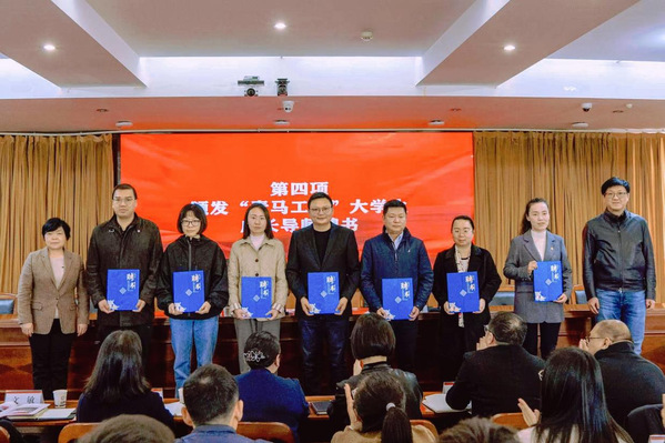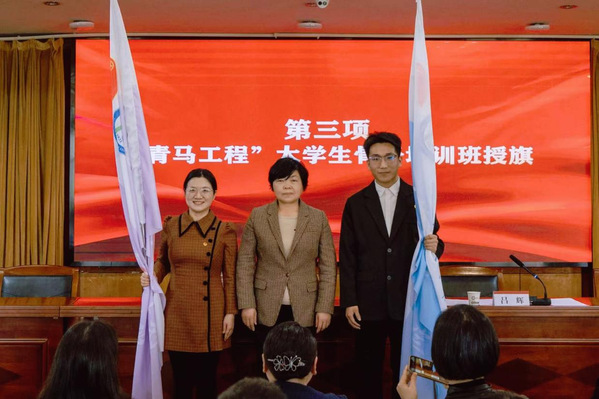 杨鲜兰为“青马工程”“光谷英才”班和“领航计划”班授旗;杨鲜兰、吕辉为“青马工程”大学生骨干培训班“成长导师”颁发聘书。