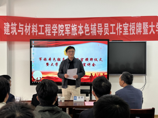 本网讯(通讯员 陈凌云)12月5日下午,建筑与材料工程学院举行2024年“军旅本色”辅导员工作室授牌暨大学生退伍政策宣讲会,副校长吕辉出席并讲话。学生工作部、人民武装部及学院主要负责人,建筑与材料工程学院全体退役大学生士兵参加会议。