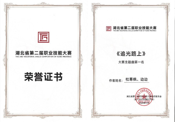 本网讯 近日,在湖北省人民政府主办,省人社厅、省总工会、省教育厅共同承办的湖北省第二届职业技能大赛主题歌曲作品征集评选中,由我校艺术学院杜寒枫老师作词曲创作的主题曲《追光路上》,荣获大赛主题曲第一名。