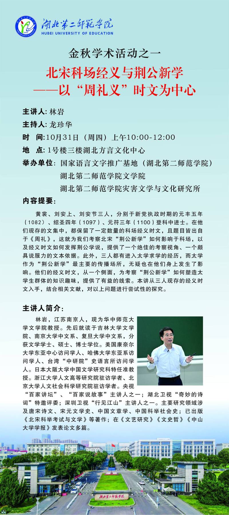 【金秋学术活动月】文学院 北宋科场经义与荆公新学——以“周礼义”时文为中心