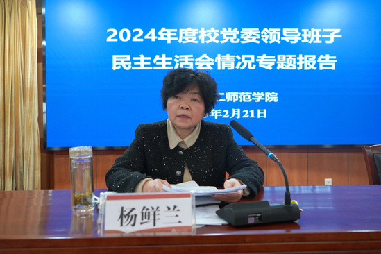 本网讯(通讯员 朱玉)2月21日下午,学校在五号会议室召开校党委领导班子2024年度民主生活会情况通报会。校党委书记杨鲜兰主持会议,全体校领导、中层干部参加会议。