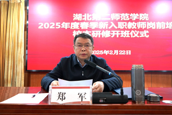 本网讯(通讯员 覃姗姗)2月22日上午,学校在行政楼五号会议室举行2025年春季新入职教师岗前培训校本研修开班仪式。校长郑军出席并授课,校党委副书记胡兴主持仪式。