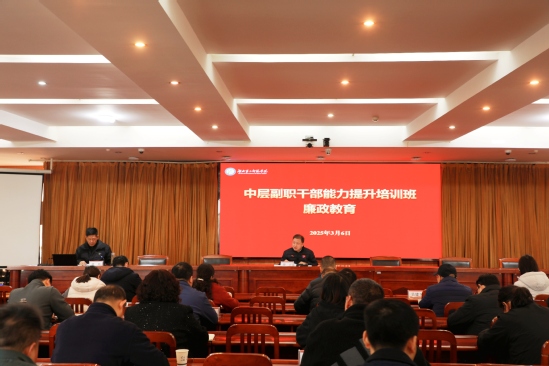 本网讯(学通社见习记者 张雨婷)3月6日,学校在五号会议室开展中层副职干部能力培训廉政教育辅导报告。学校党委副书记胡兴主持,党委副书记刘昕作专题辅导。