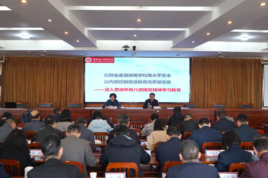 本网讯(通讯员 镇方松)4月3日上午,学校在行政楼五号会议室举行深入贯彻中央八项规定精神学习教育第三场专题报告会,校长郑军作辅导报告。校党委书记杨鲜兰主持会议,全体校领导和中层干部参加学习。