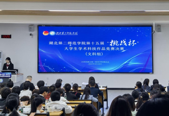 本网讯(通讯员 陈淑琴)4月10日下午,我校第十五届“挑战杯”大学生课外学术科技作品竞赛决赛终审答辩会在博雅楼举行。本次比赛邀请来自华中科技大学、湖北省社会科学院等多个单位的专家担任评委。副校长吕辉出席,校团委负责人、各教学学院分团委书记、参赛团队和指导老师参加答辩会。