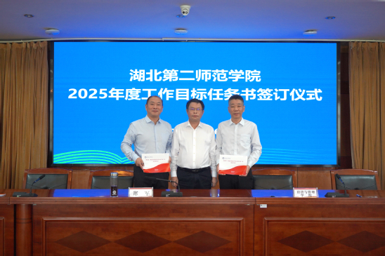 会上,校长郑军与教学单位代表、非教学单位代表签订2025年度工作目标任务书。数学与统计学院院长肖海燕、学科建设办公室(研究生处)处长陈荣分别代表教学单位和非教学单位作表态发言。