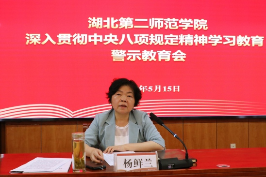 本网讯(通讯员 高慧)为扎实开展深入贯彻中央八项规定精神学习教育,进一步深化作风建设,5月15日,学校在行政楼五号会议室召开深入贯彻中央八项规定精神学习教育警示教育会。全体校领导、全体中层干部、各民主党派负责人、无党派人士代表参加,会议由学校纪委书记王平昌主持,党委书记杨鲜兰作警示教育讲话。