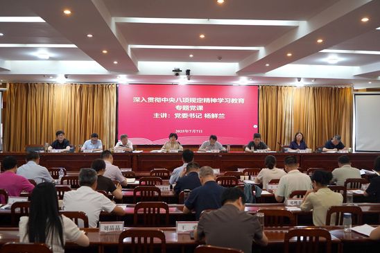 本网讯(通讯员 镇方松)7月7日上午,校党委书记杨鲜兰在行政楼五号会议室讲授深入贯彻中央八项规定精神学习教育专题党课。全体校领导、中层干部及教师代表参加学习。