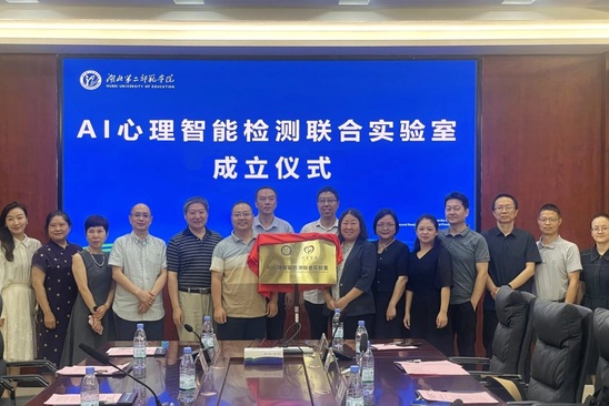 本网讯(通讯员 崔侃)7月10日上午,学校在行知实验中心S4112举行AI心理智能检测联合实验室成立仪式,湖北心康智健健康管理科技有限公司总经理李庭受邀参加,副校长张红梅出席,计算机与人工智能学院院长杨莉主持活动。