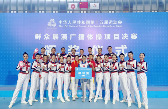 本网讯(通讯员 向琴英)9月21日,第十五届全国运动会群众展演广播体操项目决赛在中山大学珠海校区落下帷幕。我校体育学院青年教师刘煜所代表的湖北队表现突出、实力拔群,最终斩获亚军。