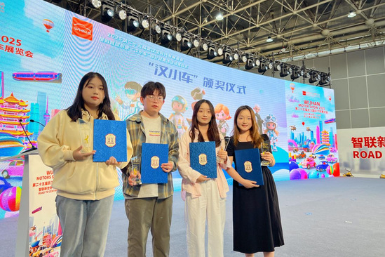本网讯(通讯员 张珊珊)9月20日上午,楚韵智驾形象“汉小车”设计征集活动颁奖仪式在武汉国际博览中心举行。我校艺术学院视觉传达专业赵文、程蓉洁、林鑫等师生团队表现亮眼,荣获4项优秀奖,作品《汉小车》被武汉国际车展确定为官方卡通形象。
