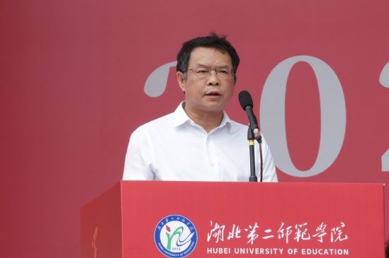 郑军说,大学是一场青春的远征,而非短暂的狂欢,并以“把握青春时光”为切入点,启发学子们“如何回答好时代之问”:学会“追逐光”,播下理想的火种,用信仰与求索点亮内心;努力“成为光”,打磨青春的棱镜,用坚韧与躬行淬炼锋芒;勇于“散发光”,汇入时代的星河,用智慧与担当照亮他人。他期望全体2025级新生——湖北二师的“新主人”,能在此明理启智、沐光前行,努力创造属于自己的无限可能。