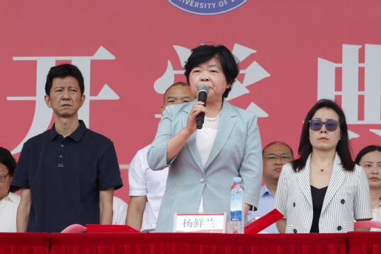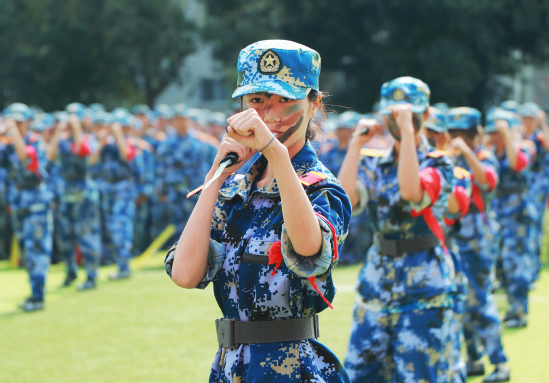 上午9时,庄严的《义勇军进行曲》奏响完毕,校党委书记杨鲜兰宣布军训检阅开始。各军训方队步伐整齐、口号嘹亮,依次通过主席台接受检阅,充分展现出新生学子昂扬向上的精神风貌。