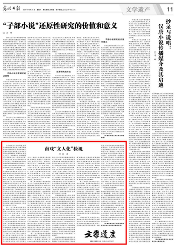本网讯(通讯员 张惠智)10月25日,《光明日报》第11版“文学遗产”专版刊登了我校文学院灾害文学与文化研究所副研究员李思学术文章《南戏“文人化”检视》。