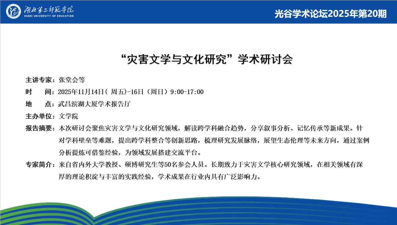 【光谷学术论坛预告】 “灾害文学与文化研究”学术研讨会
