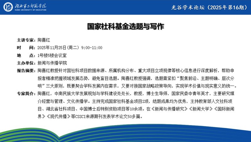 【光谷学术论坛预告】国家社科基金选题与写作