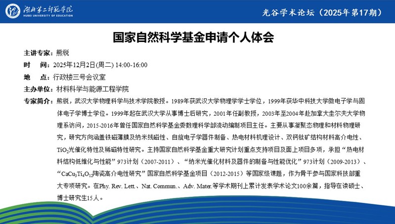 【光谷学术论坛预告】国家自然科学基金申请个人体会