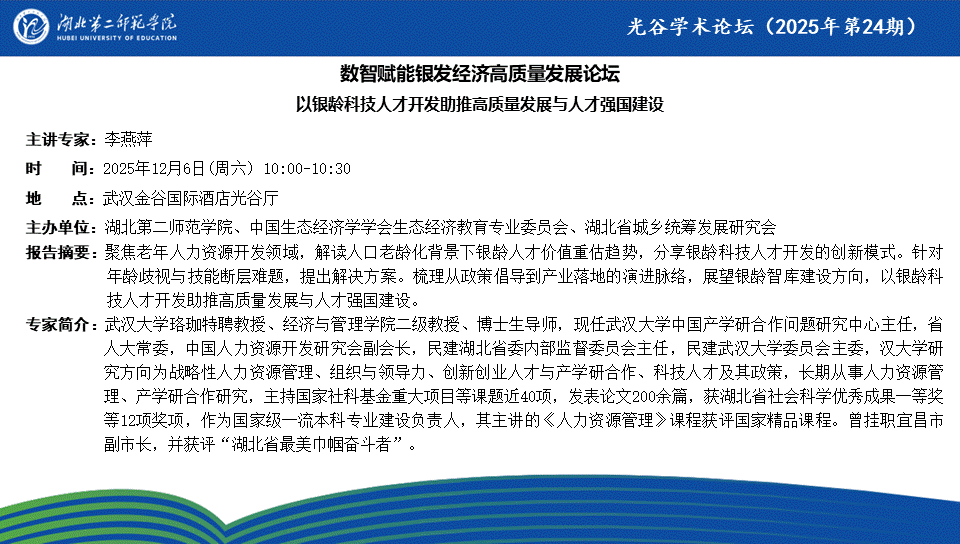 【光谷学术论坛预告】以银龄科技人才开发助推高质量发展与人才强国建设