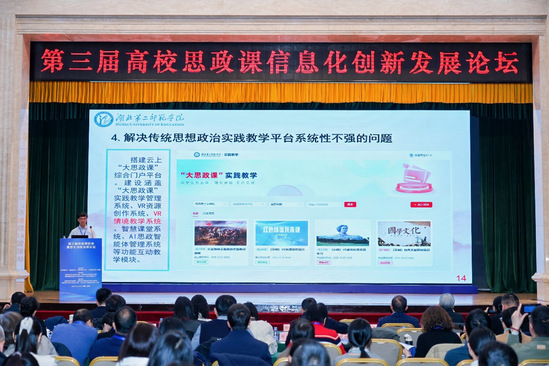 论坛上,黄红发以《数字赋能大中小学思政课实践育人一体化的探索与实践》为题,从改革背景、痛点破解、实践路径及成效等方面展开分享,系统阐释我校思政课数字化转型核心思路。他介绍,我校落实党的二十届四中全会精神与习近平总书记关于教育的重要论述,在智能系统化的数字马院建设、“4S”情境教学模式探索及“沿着习近平总书记足迹 大中小学共上一堂思政实践大课”全国典型案例培育等方面成效显著,数智赋能实践育人的创新举措为高校思政课高质量发展提供了有益借鉴。
